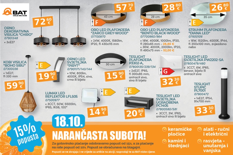 Podsjećamo, popust od 15% se obračunava na sve redovne cijene i vrijedi za plaćanje gotovinom ili jednokratno kartično plaćanje, dok za plaćanje u ratama, popust iznosi 10%. Popusti se ne zbrajaju i ne vrijede za artikle na akciji, rasprodaji te za BAT niske cijene.