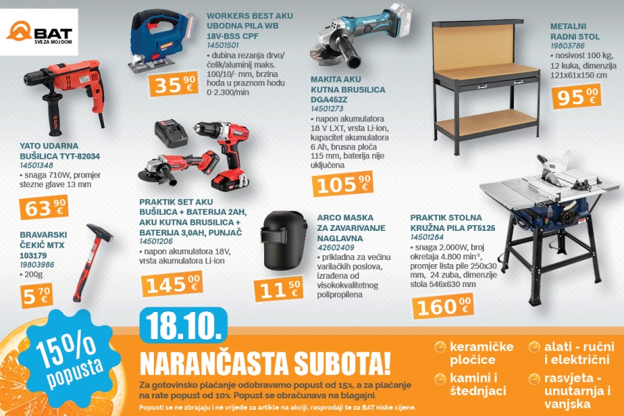 Podsjećamo, popust od 15% se obračunava na sve redovne cijene i vrijedi za plaćanje gotovinom ili jednokratno kartično plaćanje, dok za plaćanje u ratama, popust iznosi 10%. Popusti se ne zbrajaju i ne vrijede za artikle na akciji, rasprodaji te za BAT niske cijene.