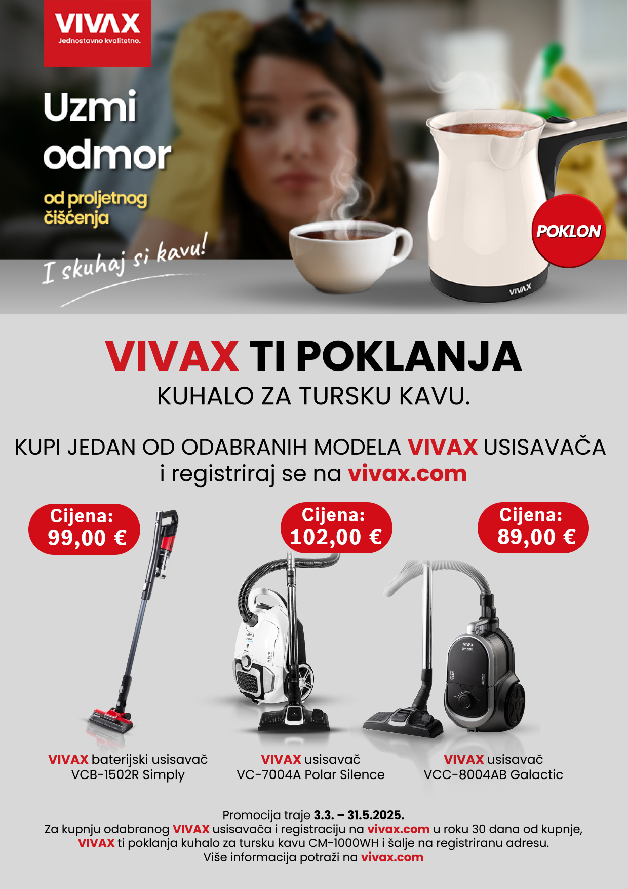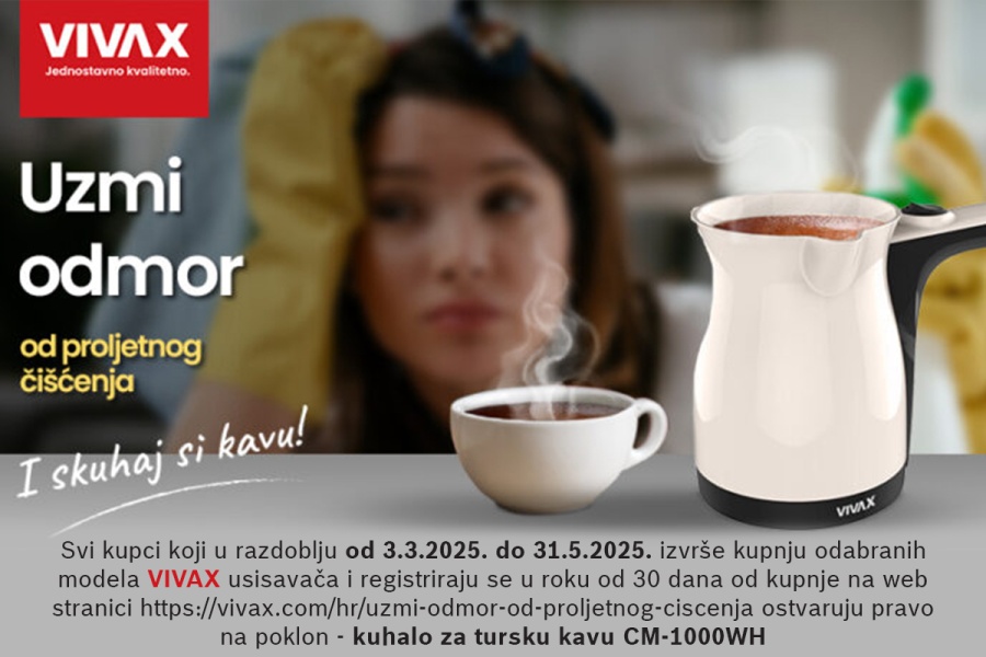 Kupite odabrane modele VIVAX usisavača, registrirajte svoju kupnju ovdje u roku 30 dana od kupnje, a VIVAX vam daruje kuhalo za tursku kavu!
