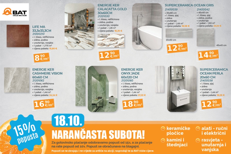 Podsjećamo, popust od 15% se obračunava na sve redovne cijene i vrijedi za plaćanje gotovinom ili jednokratno kartično plaćanje, dok za plaćanje u ratama, popust iznosi 10%. Popusti se ne zbrajaju i ne vrijede za artikle na akciji, rasprodaji te za BAT niske cijene.